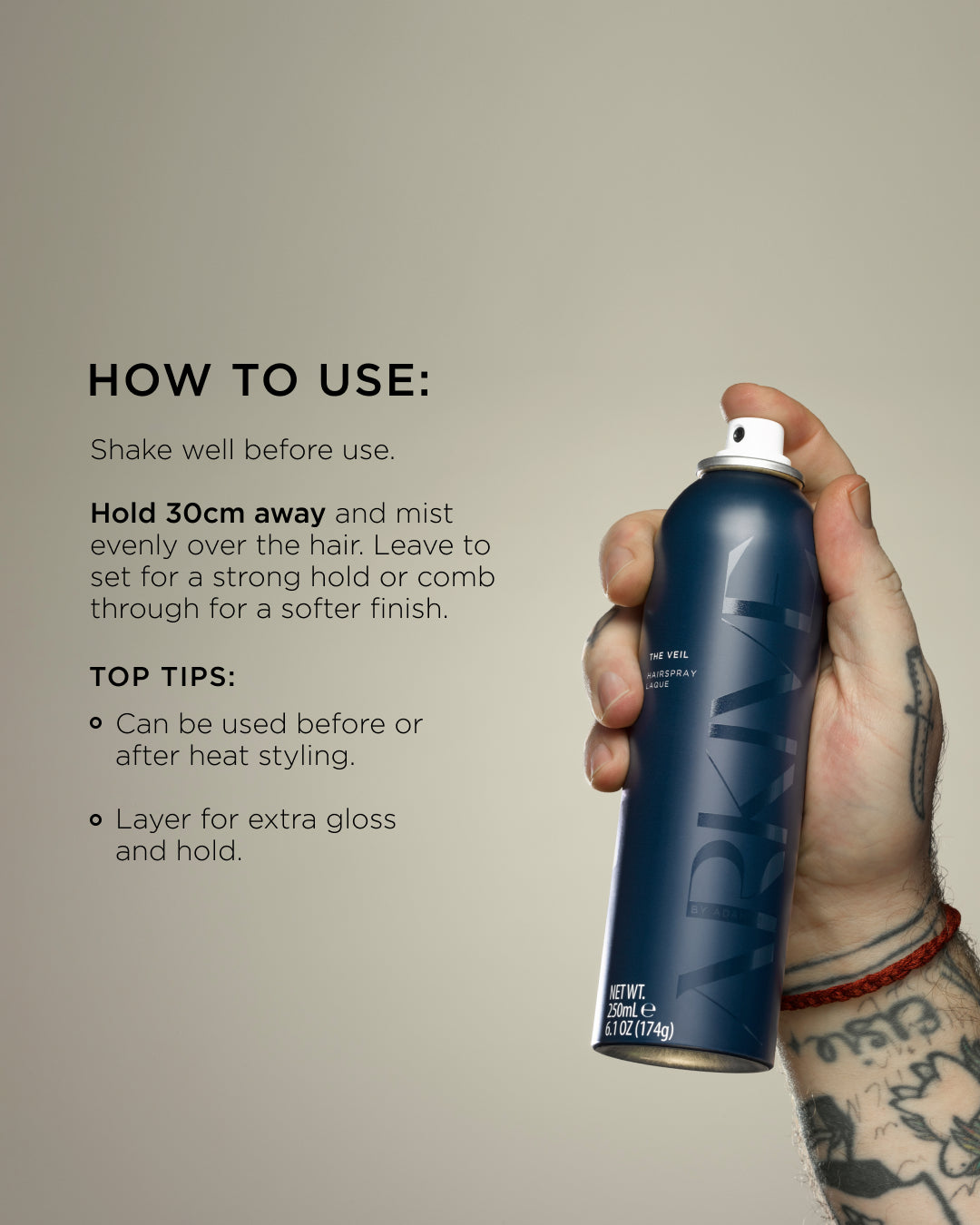 “From sleek and straight to big, curly and voluminous, The Veil Hairspray is the all-important finishing touch to lock in any style.”