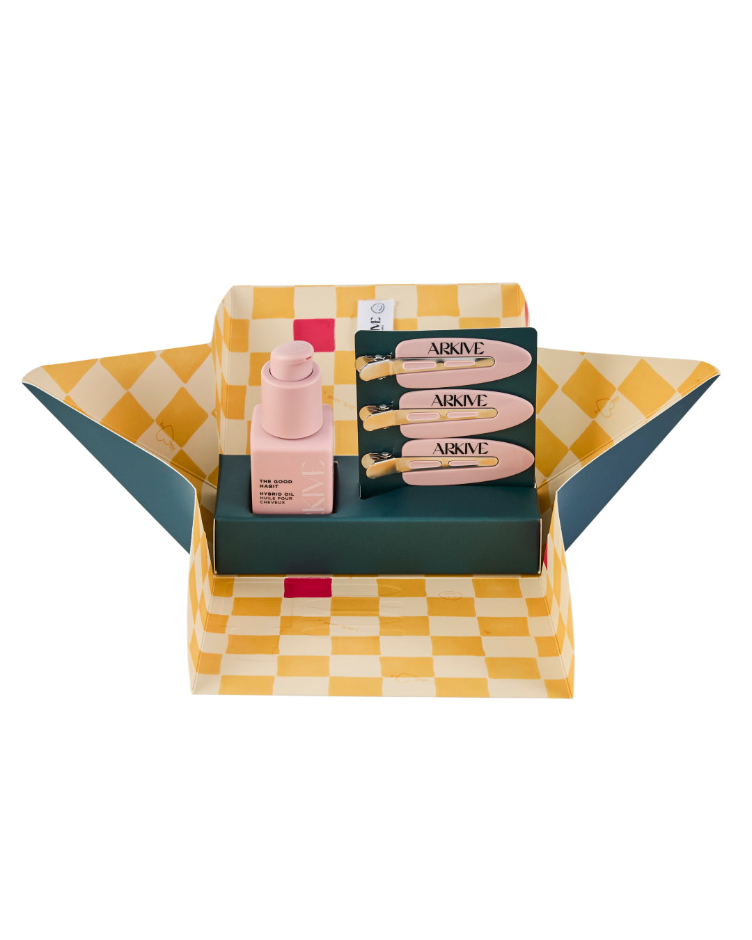 Experience one of our must-have heroes alongside our exclusive creaseless clips. The super hydrating and gloriously scented Good Habit Hybrid Oil is the perfect addition to any haircare routine, ensuring every strand is left soft, smooth and shiny. When styling, use our Creaseless Clips to keep your hair in place and set your style.